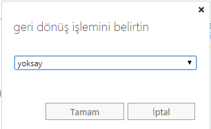Bir diğer seçenek olan birim seçin linkine tıklayalım. Açılan geri dönüş işlemini belirtin penceresinde Yoksay seçeneğini seçerek tamam butonuna tıklayalım.