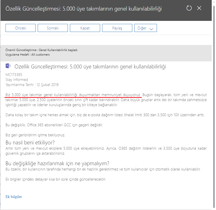 Forum MenuForum NavigasyonuForumMembersActivityGirişForum içerik haritası - Buradasınız:ForumMicrosoft 365: Microsoft TeamsMevcut takımlarda üye sayısını ar …Please Giriş to create posts and topics.Mevcut takımlarda üye sayısını artık 5000 kişiye kadar çıkarabilirsiniz.Mehmet PARLAKYİĞİT@admin273 Yazı#1 · 19/02/2019, 13:57Şu kişiden alıntılanmıştır: Mehmet PARLAKYİĞİT tarhinde 19/02/2019, 13:57Ek bilgiler için tıklayınız. Ek bilgiler için tıklayınız. Konuya Cevap Gönder Mevcut takımlarda üye sayısını artık 5000 kişiye kadar çıkarabilirsiniz. İptalRSS Beslemesi