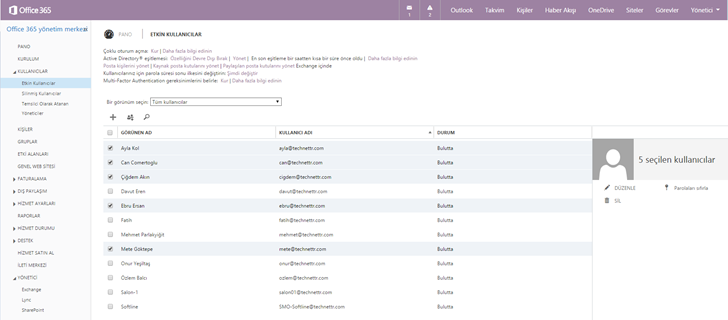 Şimdi daha önceden kullanıcı hesaplarıyla alakalı bilgilerin gönderilmesini istediğim. Mail hesabıma baktığımda bana CSV dosyası ile oluşturmuş olduğum kullanıcılarıma ait bilgileri görebilirim. Burada verilen geçici parolaları kullanıcılarınızla paylaştıktan sonra kullanıcılarınız Office 365 giriş yaptıklarında bu geçici parolaların değiştirilmesi için zorlanacaklardır. Kullanıcılar parolalarını değiştirdikten sonra artık Office 365 hizmetlerinden faydalanmaya başlayabilirler.